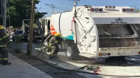 Debido a un sobrecalentamiento de balatas, un camión recolector de basura perteneciente a Servicios Públicos Municipales presentó un conato de incendio que dejó daños materiales.