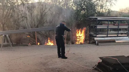 Los hechos se registraron a las 05:30 horas, cuando elementos del Departamento de Bomberos fueron alertados por un incendio en las calles Del Oro y De los Olivos , en la colonia Parque Industrial.En el reporte se mencionó que el fuego comenzó en la maleza aledaña al terreno donde se ubican las bodegas, y que aunque personal de seguridad intentó sofocar las llamas , les fue imposible, por lo que dieron aviso al número de emergencias.Oficiales de la Policía Municipal y Bomberos de Hermosillo acudieron al sitio y trabajaron para controlar el fuego, evitando que se propagara a las ya mencionadas bodegas.En el lugar no se presentaron personas lesionadas, solo daños en estructuras metálicas ubicadas en el cerco perimetral, así como algunas tarimas de madera.
