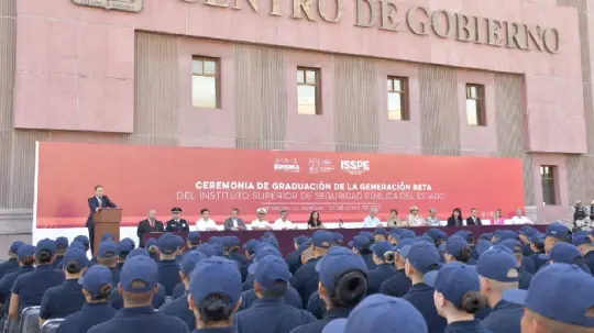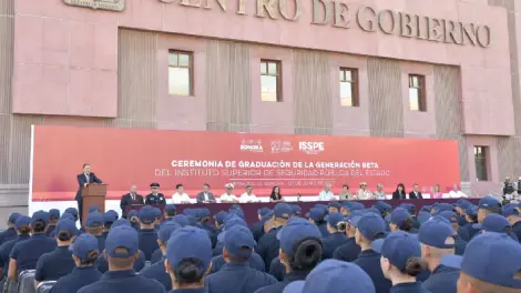 HERMOSILLO, SON.- El gobernador Alfonso Durazo Montaño, al atestiguar la ceremonia de graduación de 156 integrantes de la generación Beta, indicó que con la formación constante de cadetes en el Instituto Superior de Seguridad Pública del Estado (Isspe) se podrá cumplir la meta de duplicar el número de agentes de la Policía Estatal de Seguridad Pública al finalizar la presente administración, y así recuperar la paz y seguridad para las familias sonorenses.
