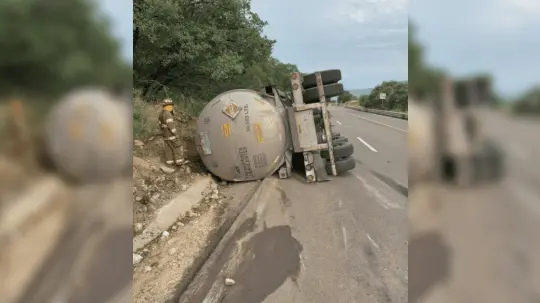 De nueva cuenta, una pipa que transportaba material peligroso terminó volcada, esta vez en la carretera Cananea-Ímuris.