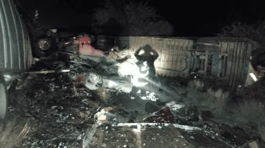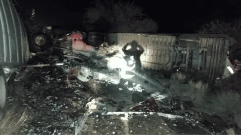 Al menos dos personas resultaron lesionadas al presentarse un choque por alcance entre dos tráileres, uno de ellos quedó volcado a la orilla de la carretera Hermosillo-Guaymas.