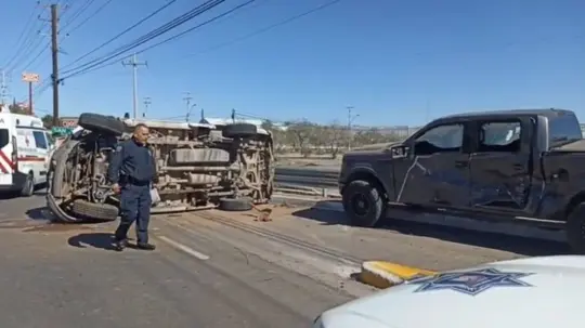 Los hechos se suscitaron alrededor de las 12:40 horas sobre la carretera Hermosillo - Nogales y la calle Ojuelos, en la colonia Combate, donde el pick up blanco quedó volcado sobre el costado derecho.