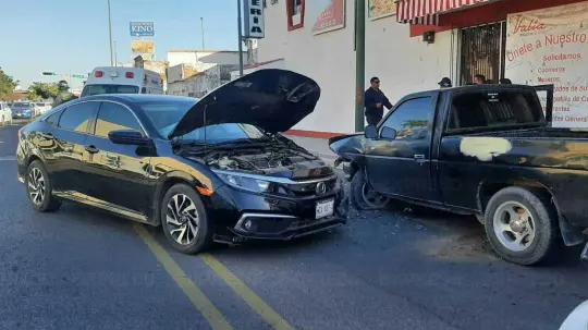 Los hechos se presentaron sobre la avenida Rosales, entre las calles Tehuantepec y Manuel Cubillas, frente al Auditorio Cívico del Estado, donde los vehículos resultaron con daños de consideración.