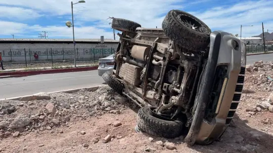 Fuertes daños materiales dejó un aparatoso volcamiento que se registró en el bulevar Porfirio Hernández, al oriente de Guaymas, en donde el conductor del vehículo se fue y abandonó el vehículo.