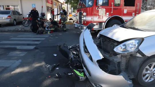 Motociclista resulta lesionado al ser embestido por un automóvil
