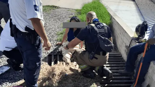 En un operativo conjunto, elementos de la Policía Municipal y del Departamento de Bomberos de Hermosillo lograron rescatar a una mujer que cayó en una alcantarilla pluvial.