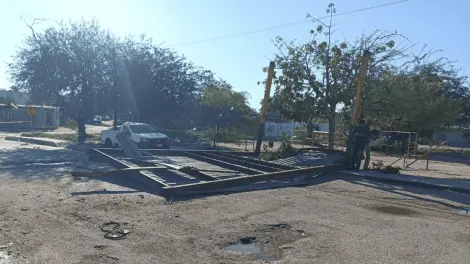 Fuertes vientos derrumban estructura de metal en Hermosillo