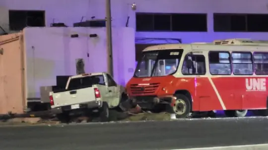 Los hechos ocurrieron durante la noche del miércoles, sobre el cruce del bulevar Solidaridad y la calle Real del Arco, en las inmediaciones de una plaza comercial del sector poniente, donde se pudo apreciar el transporte con daños de consideración.