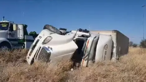 Trailer pierde control y termina volcado en Hermosillo-Guaymas