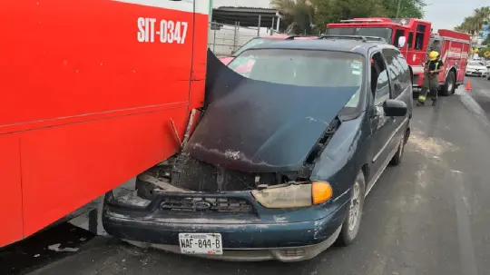 Una madre y su hijo resultan con lesiones al impactar camión urbano