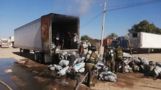 Una unidad de carga pesada se incendió en la parte trasera del estacionamiento en la zona de la Central de Abastos de Hermosillo; el trailer se encontraba lleno de carbón.