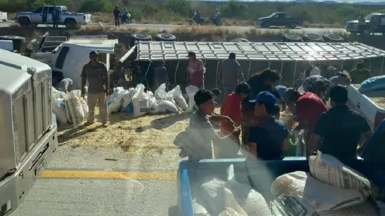 Los hechos se registraron alrededor de las 7:00 horas, en las inmediaciones de la comunidad de Sirebampo, Huatabampo, cuando el conductor de la unidad que transportaba maíz perdió el control de la misma, lo que ocasionó que se volcara.