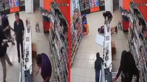 En redes sociales ha circulado la grabación de video seguridad en donde se aprecia a dos encapuchados entrar al negocio con armas largas en mano, sometiendo a otra persona al interior del negocio mientras el dependiente es oprimido contra el piso.
