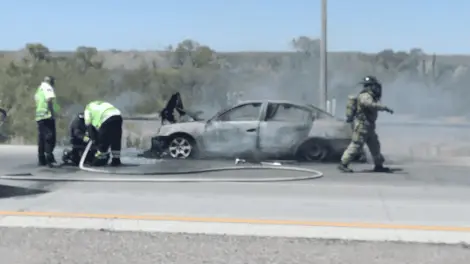 Se incendia vehículo en la carretera Magdalena-Santa Ana