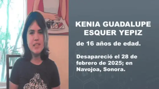 La Fiscalía General de Justicia del Estado de Sonora (Fgjes) activó este viernes la Alerta Amber para la búsqueda y localización de Kenia Guadalupe Esquer Yepiz, menor de 16 años de edad desaparecida en Navojoa.