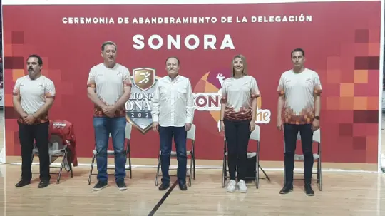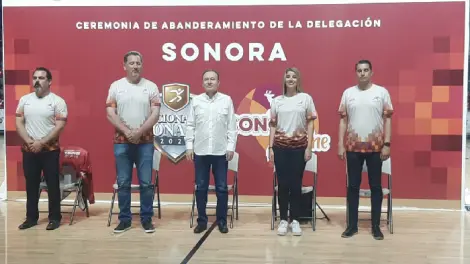 “Me da muchísimo gusto participar en esta ceremonia y los felicito con mucho gusto deseándoles lo mejor de los éxitos con la esperanza de que pongan en alto el nombre de Sonora en estos juegos”, comentó.