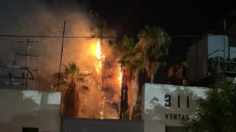 Fue un fuerte estruendo el que se escuchó en el sector poniente de la ciudad, mismo que en cuestión de segundos ocasionó un incendio en las palmeras del sitio.