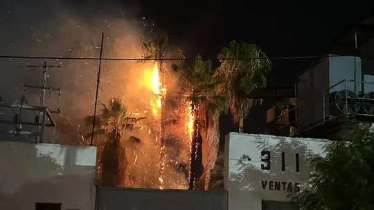 Al lugar de los hechos arribaron elementos del Cuerpo de Bomberos de Navojoa, quienes se percataron de que al menos tres palmeras se encontraban en llamas amenzando alcanzar cables de alta tensión de la Comisión Federal de Electricidad (CFE).
