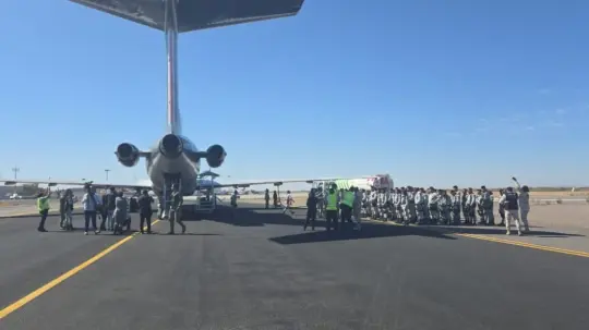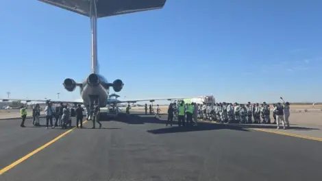 "Nos encontramos en las instalaciones del Aeropuerto Internacional de Hermosillo, donde estamos recibiendo al personal de Guardia Nacional, que llevará a cabo operaciones en el estado de Sonora, desde San Luis Río Colorado, hasta los límites con el estado de Chihuahua, sobre la línea fronteriza", informó.