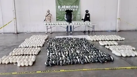 Personal del Ejército Mexicano y de la Guardia Nacional detectaron un tracto camión cargado con la droga que aparentemente venía de Ciudad de México.