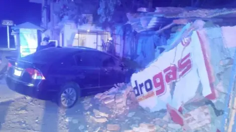 GUAYMAS, SON.- Recién a las 03:00 horas de este jueves, un conductor destrozó la parte delantera de su automóvil al chocar contra la barda de una casa ubicada sobre la calzada Agustín García López, antes de llegar a la calle 25 del sector Muralla en Guaymas.