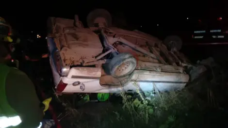De manera extraoficial se dice que el conductor de un vehículo blanco, perdió el control de la unidad por conducir a exceso de velocidad, lo que provocó que bajara de la carretera para posteriormente volcar.