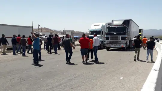 NOGALES, SON.- La mañana de este lunes 25 de abril, sobre el tramo ubicado entre el kilómetro 21 de la Carretera Internacional México 15 y el acceso hacia el Recinto Fiscal de Nogales, transportistas mantuvieron un bloqueo sobre la rúa federal que provocó un caos vial.