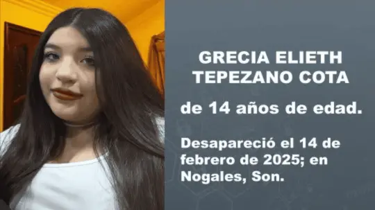La Fiscalía General de Justicia del Estado de Sonora (Fgjes) activó Alerta Amber para localizar a Grecia Elieth Tepezano Cota, menor de 14 años de edad desaparecida en Nogales, Sonora.