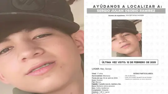 El menor de edad fue visto por última vez el pasado 12 de febrero de 2025 en Altar, Sonora, y hasta el momento no se sabe de su paradero.