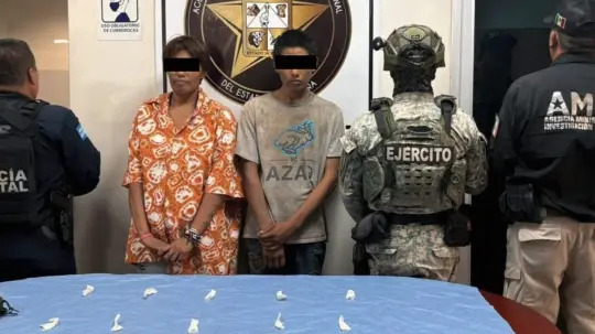 En dicha acción fueron detenidos Ángel Guadalupe ‘N’ de 21 años y Lucía Guadalupe, de 34, a quienes se les encontraron 12 envoltorios confeccionados en plástico, que contenía una sustancia similar a la metanfetamina.