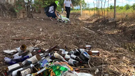 Botellas de cervezas de diferentes marcas fue el resultado de la limpieza que realizaron ciudadanos en la calzada Francisco Villanueva, uno de los lugares que es el punto de convivencia de cientos de cajemenses durante los fines de semana.
