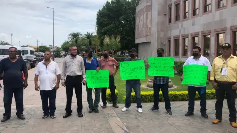 Un grupo de 17 choferes de taxis colectivos se manifestaron afuera del Palacio Municipal de Cajeme, tras señalar presuntos actos de hostigamiento por parte de los elementos de Tránsito Municipal.