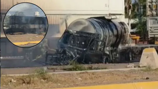 Una pipa cargada con combustible explotó al chocar contra el tren en la colonia Puente de Picos, de Cajeme, Sonora. Autoridades no han informado si hay personas lesionadas o víctimas fatales tras el accidente.