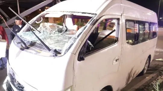 En el sitio fue encontrado un vehículo de la marca Nissan NV-350 modelo 2017 que se encontraba en su costado izquierdo, impactado contra un poste de alumbrado público, encontrándose a tres pasajeros.