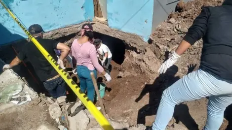 CIUDAD OBREGÓN, SON.- Al menos los restos de dos personas fueron localizados por el colectivo de las Guerreras Buscadoras de Cajeme, en el patio frontal de un domicilio del fraccionamiento Urbi Villas del Rey, al poniente de Ciudad Obregón, por lo que al momento suman 4 cuerpos en la misma fosa clandestina.