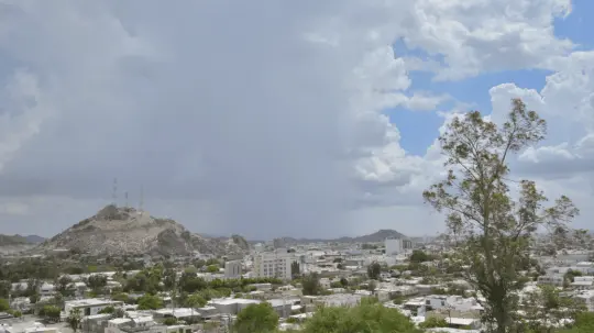 - Hermosillo: mínima de 26°C y máxima de 32°C; vientos de hasta 40 km/h, cielo parcialmente nublado y 40% de probabilidad de lluvia