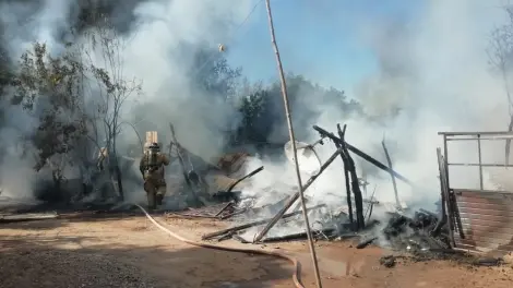 NAVOJOA, SON. - Un domicilio construido de cartón, lámina y madera, fue consumido por las llamas de un incendio durante la mañana de este viernes en las inmediaciones de la Comisaría de San Ignacio Cohuirimpo.