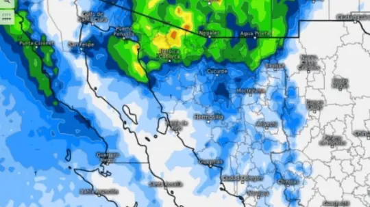 Esta combinación generará lluvias en gran parte del territorio y un descenso marcado de temperaturas, con posibles caídas de aguanieve en los puntos más elevados de las montañas sonorenses.
