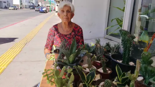 María de Jesús Cazona Delgado decidió emprender desde hace tres años arreglando su jardín para vender plantas en la vía pública los sábados, en el centro de Guaymas, ya que es un espacio donde hay mayor afluencia de personas.
