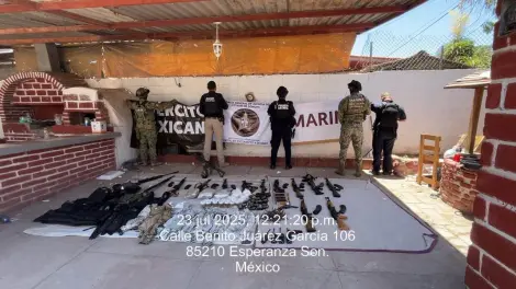 La Secretaría de Marina a través de la Armada de México, por conducto de la Segunda Región Naval informó en un boletín de prensa que ayer 23 de julio, lograron el aseguramiento de armamento y equipo táctico, durante la ejecución de una orden de cateo en la Colonia Esperanza, del municipio de Cajeme, Sonora.