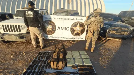 En un operativo de patrullaje e investigación en el Ejido Victoria, ubicado en la localidad de Puerto Libertad, en el municipio de Pitiquito, elementos de la Secretaría de Marina (Semar) y de la Agencia Ministerial de Investigación Criminal (AMIC) detectaron una construcción tipo búnker, donde aseguraron cinco vehículos (cuatro de ellos con reporte de robo), armas de fuego y equipo táctico.