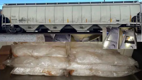 Los paquetes de droga asegurados se encontraban en las vigas estructurales de ambos vagones, tipo tolva del tren que cruzaba de México a Estados Unidos.