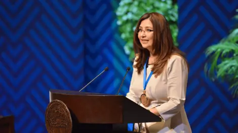 La doctora Dena María Jesús Camarena Gómez rindió protesta como nueva rectora de la Universidad de Sonora para el periodo de 2025-2030, durante una ceremonia realizada en el Teatro Emiliana de Zubeldía.