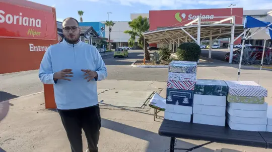 Con el llamado “Taller de Santa” José Luis Soltero Ramírez encontró una opción de generar ingresos económicos durante las fiestas decembrinas, al ofrecer la envoltura de regalos al aire libre.