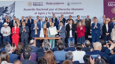 Con el objetivo de establecer acciones concretas para garantizar el suministro del vital líquido en beneficio de los sonorenses, Sonora se sumó a la firma del Acuerdo Nacional por el Derecho Humano al Agua y la Sustentabilidad promovido por la presidenta Claudia Sheinbaum Pardo y asumido por gobernadores emanados de todos los partidos, empresarios, instituciones académicas y distritos de riego, aseveró el gobernador Alfonso Durazo Montaño.