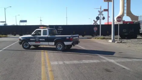 Minutos después de que se descarrilaron las góndolas de las máquina 2027 y 22014, llegó al lugar un técnico de Grupo México, para solucionar el problema y poner de nueva cuenta “la bestia” en el riel y abrir paso a la circulación vehicular.