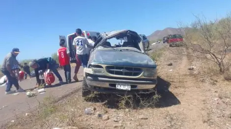 El volcamiento de una camioneta al norte de Empalme dejó como saldo a tres mujeres lesionadas y fuertes pérdidas materiales, en hechos ocurridos la mañana del domingo.