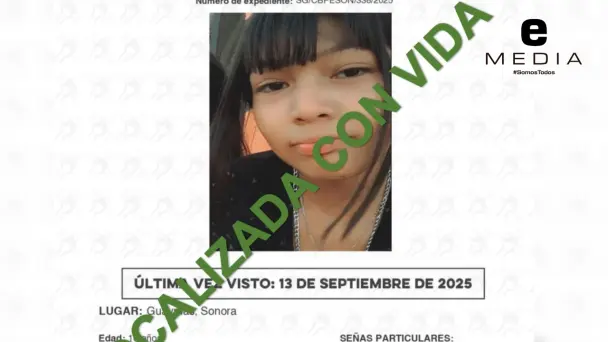 La Fiscalía General de Justicia del Estado de Sonora (FGJE) informó este martes por la noche la localización de Edna Dalila González Jaimes, de 16 años, quien había sido reportada como desaparecida desde el pasado 13 de septiembre en Guaymas.