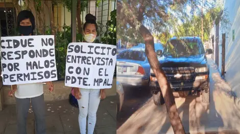 Ante la falta de respuesta por parte de esta dependencia, Martínez Castro se plantó a las afueras del Ayuntamiento solicitando la presencia del alcalde Fermín González Gaxiola.