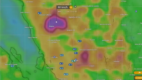 La Dirección General de Protección Civil (DGPC) de Sonora informó que se esperan ráfagas de viento de hasta 80 kilómetros por hora (km/h) en los municipios de Caborca, Benjamín Hill, Magdalena, Santa Ana, Hermosillo, Ures, Mazatán y La Colorada, así como en comunidades circunvecinas.